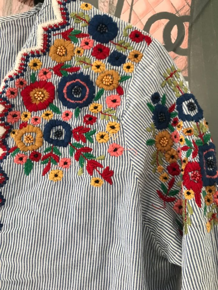 Blouse rayée broderies fleurs S Zara - photo numéro 2