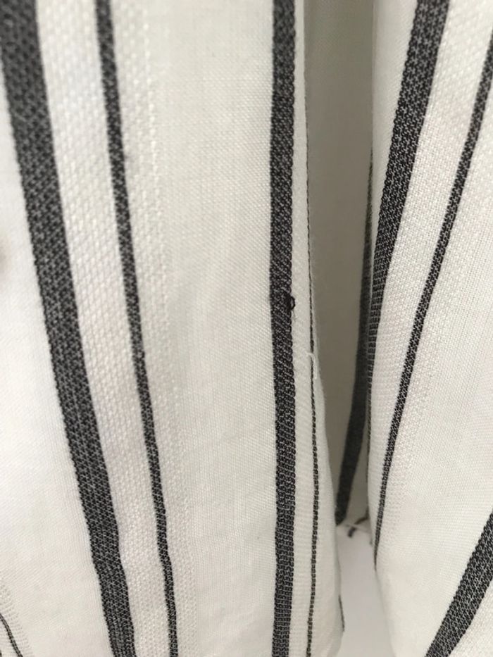 Un tout petit fil tiré dans la rayure noir Étiquette coupée
