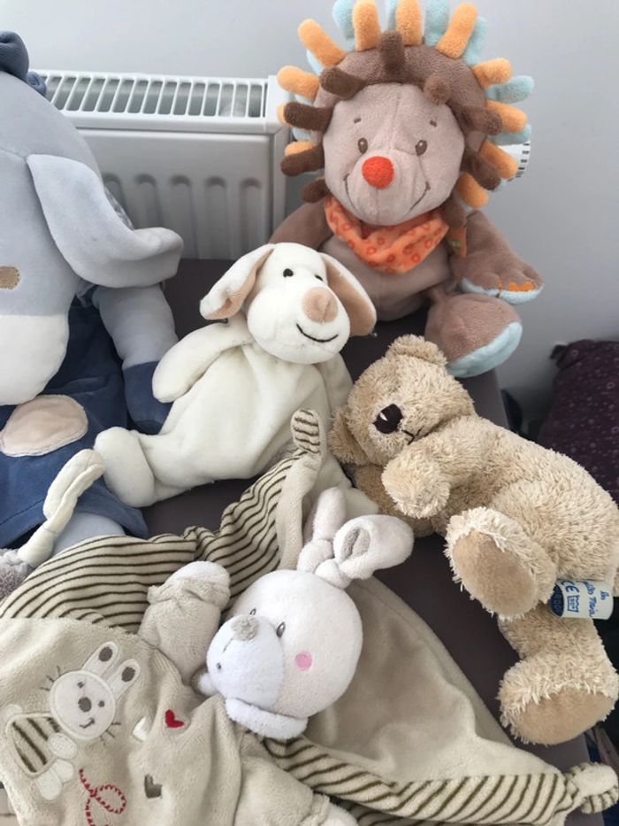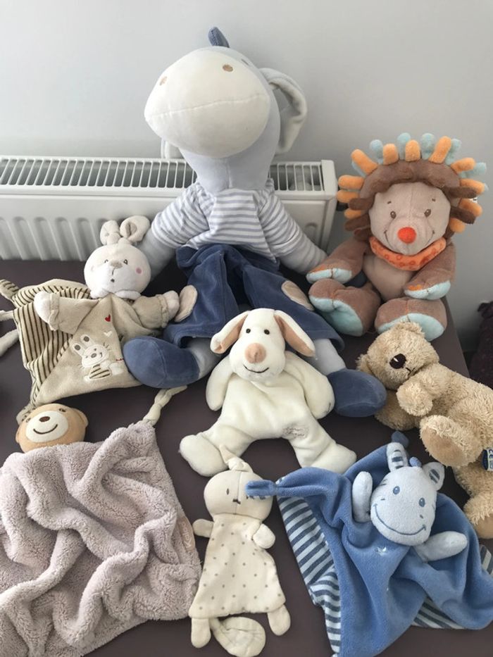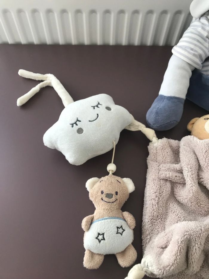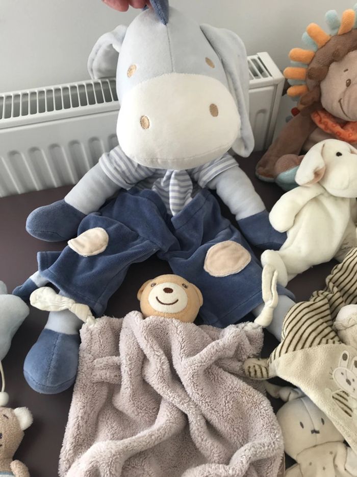 Kaloo, sucre d’orge , nattou .. Doudous et 1 range pyjama et 1 nuage musical Viennent tous d’être nettoyés