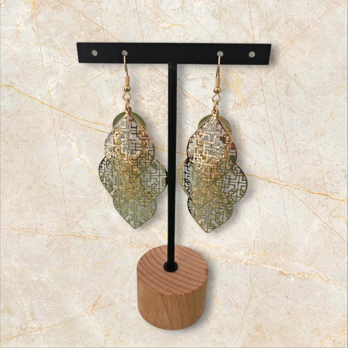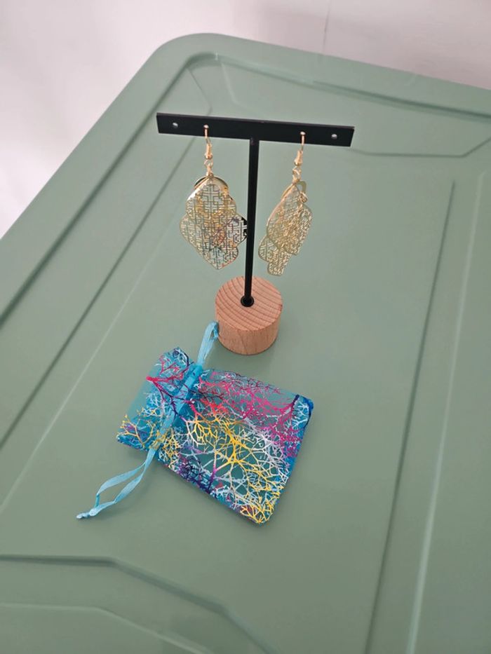 🗂 Catégorie: #amandinebonbijoux 🎨 Colories: Doré 🌻 Thème/motif: Feuille style oriental 💐 Détails supplémentaires: Vendu avec un pochon en tissus, le support n'est pas à vendre. Pas de photos portées.