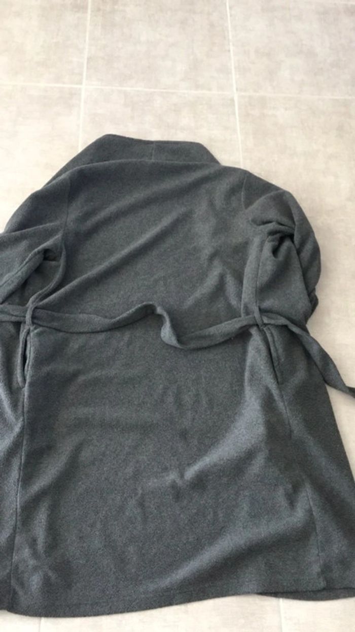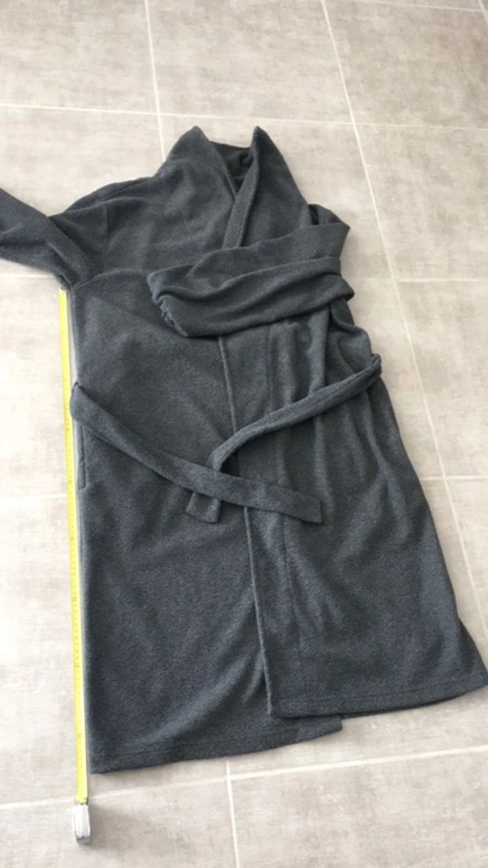 Peignoir gris, chaud et doux élastique au Poignée , 2poches , dimensions l’épaule au bas 100 Sinon 84 de dessous du bras Très bonne état