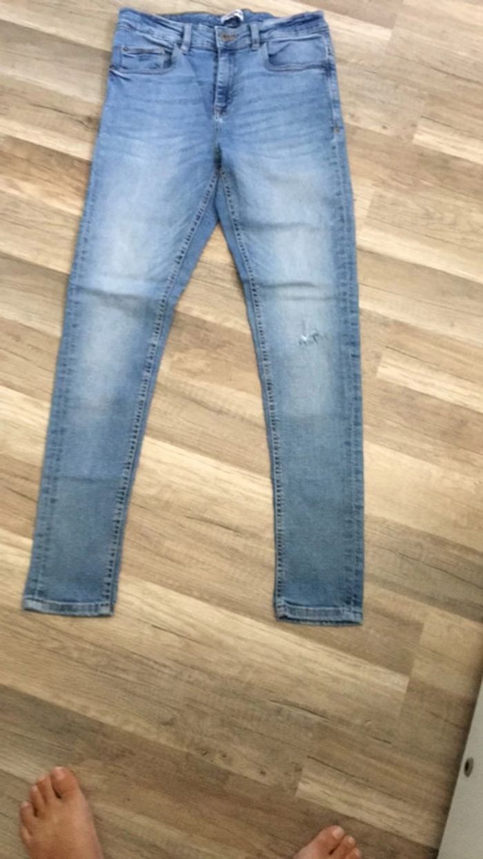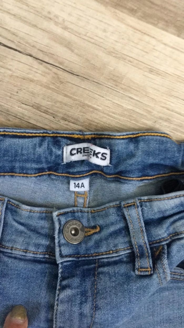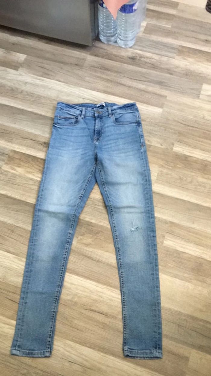 Jean élastique bleu Genou gauche effet déchiré Taille 14 ans gemo
