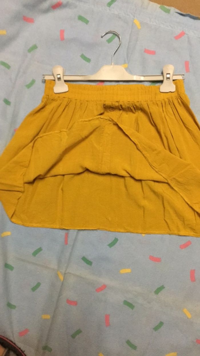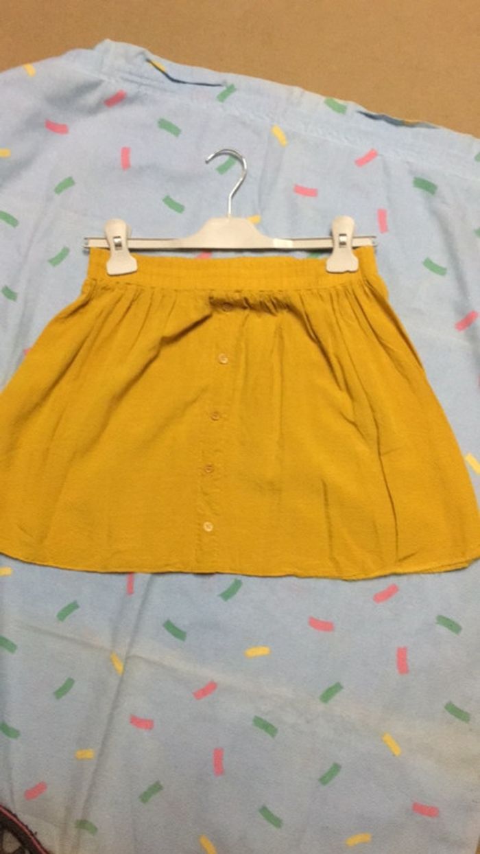 jupe taille élastique,courte jaune moutarde fluide taille L convient aussi pour M