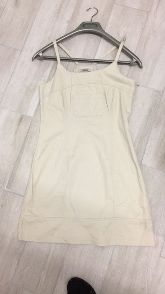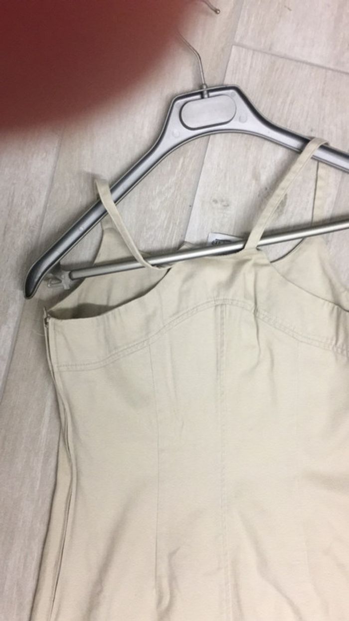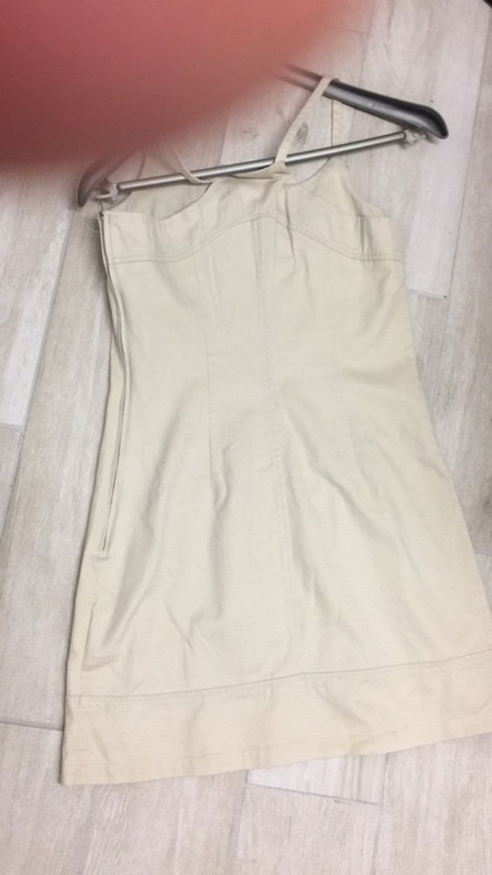 robe à bretelle ,matière jeans taille 38x couleur écru beige. fermeture sur le côté droit