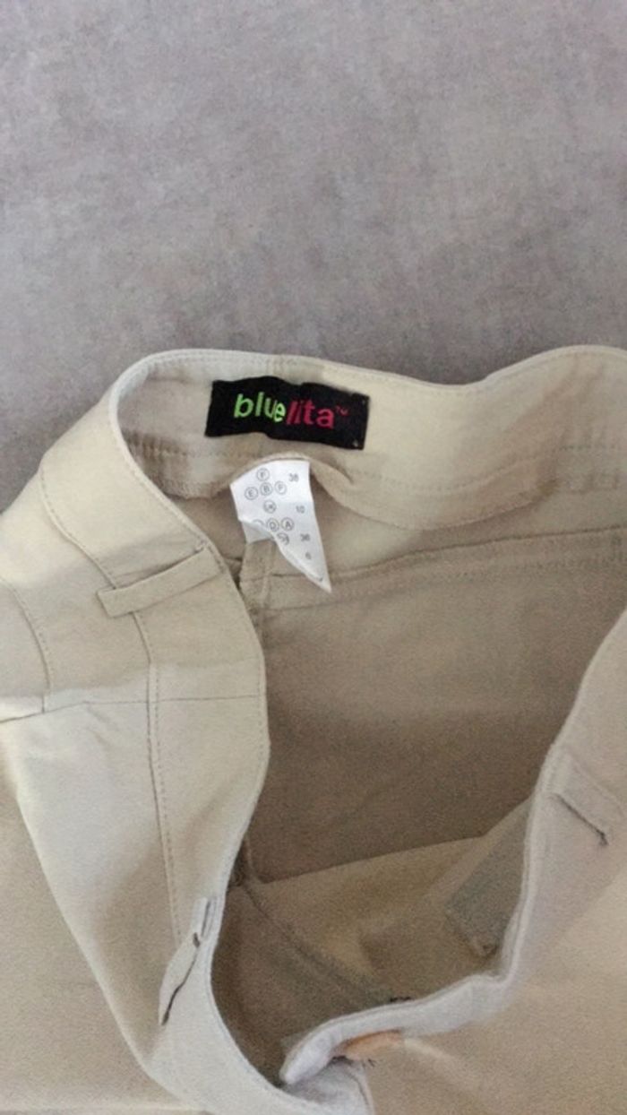 pantacour élastique très bonne état taille 38 1couleur crème coupe droite marque cache cache 1 couleur beige coupe droite marque bluelita.
