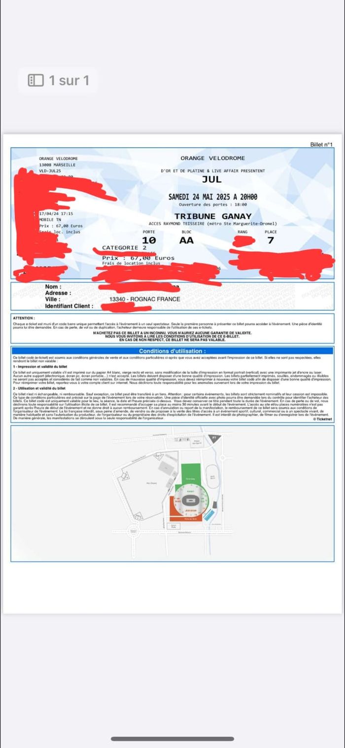 Bonjour, Je vends ma place pour le concert de Jul ce Samedi 24 Mai au Velodromme, c'est une place seule en catégorie 2 ( Ganay). Je peux me déplacer ou vous envoyer ma carte d'identité ou quoi pour que vous ayez une 'garantie' (c'est bien une place et pas un CD comme m'oblige la catégorie du site).