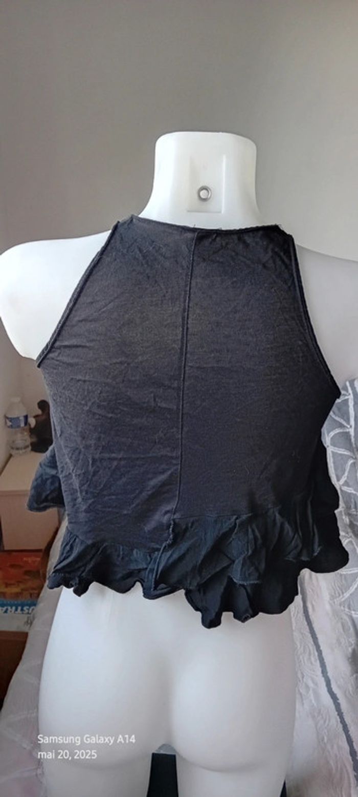 Top court débardeur avec volants assymetrique noir femme S zara w&b collection - photo numéro 11