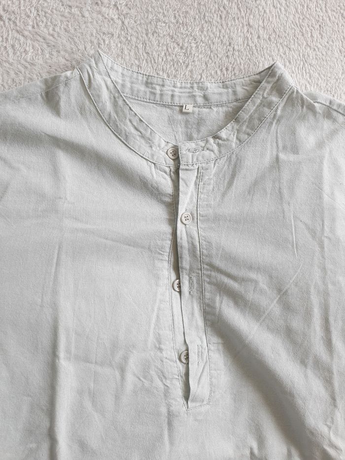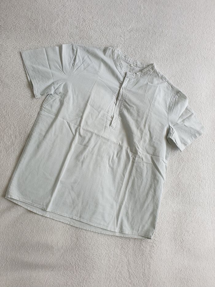 Chemise à manches courtes été homme L. Couleur verte tres claire. Col rond a boutons. Portée 1 seule fois.
