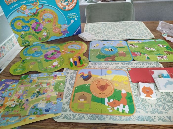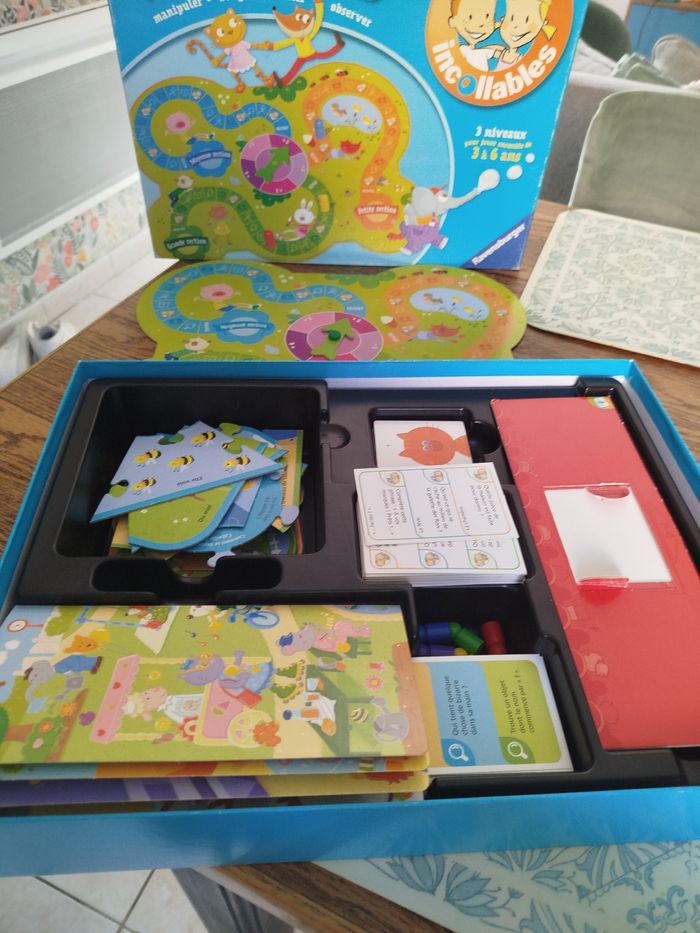 En parfaite état Mon premier jeu les petits incollables trois niveaux pour jouer ensemble de 3 à 6 ans. Le plateau de jeu renvoie à 6 activités courtes et variées pour que les enfants de maternelle s'amusent, chacun à leur niveau !