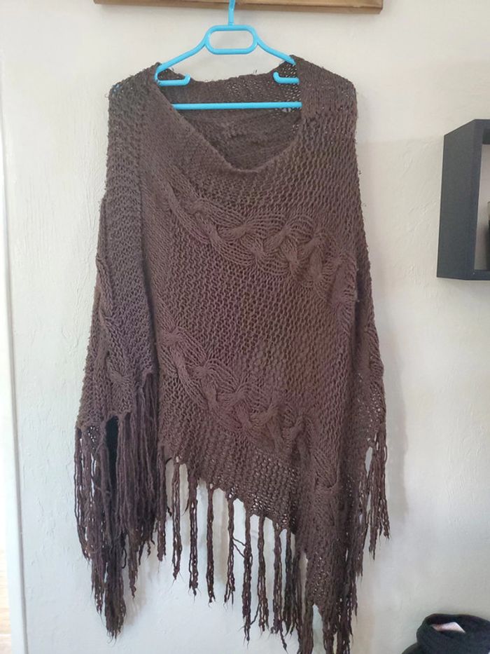 Poncho chocolat grosse mailles - photo numéro 1