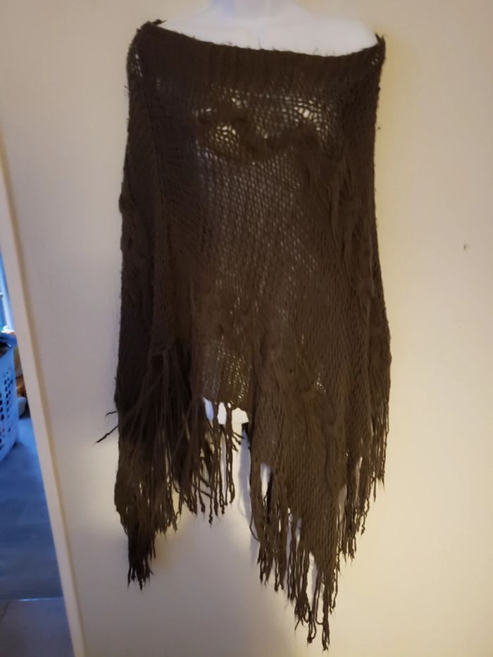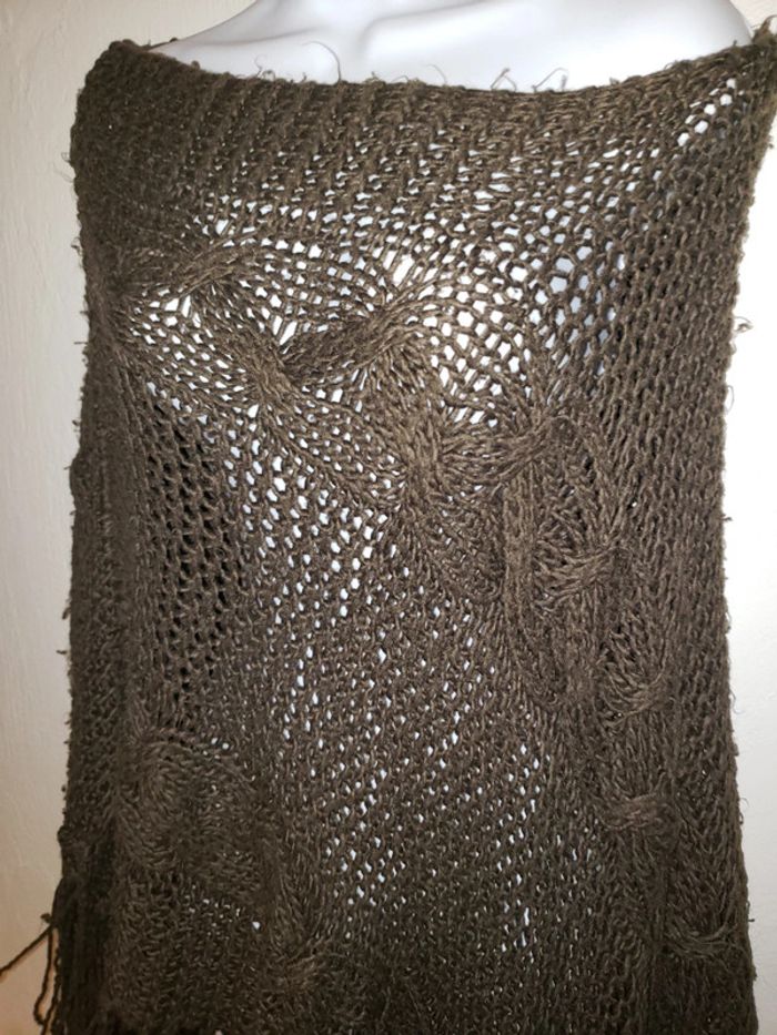 Poncho chocolat grosse mailles - photo numéro 3