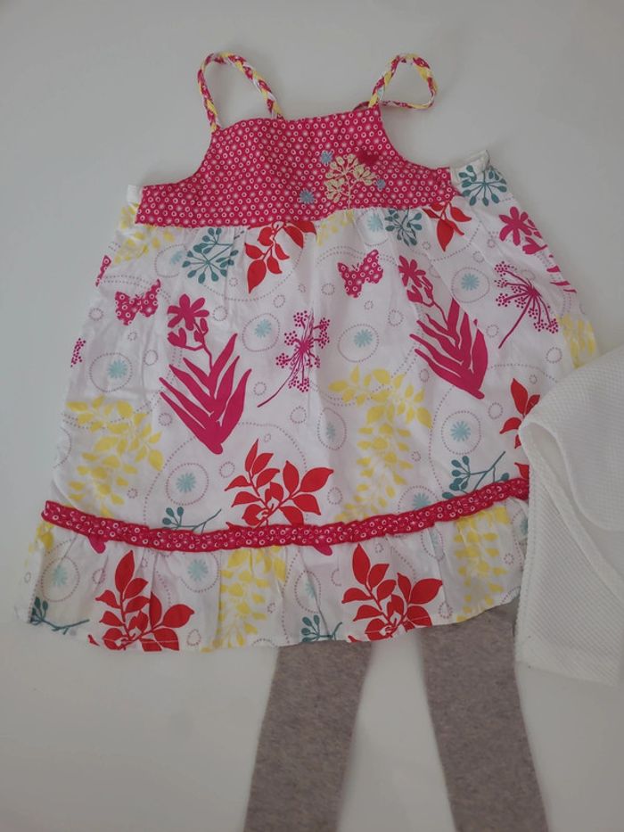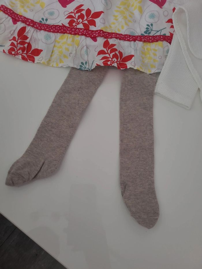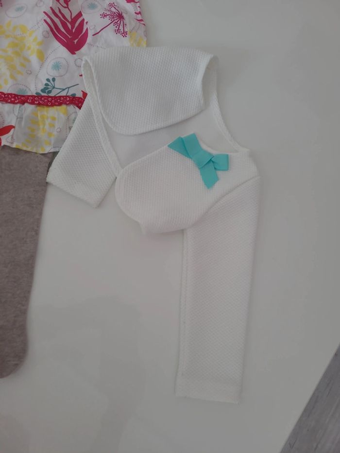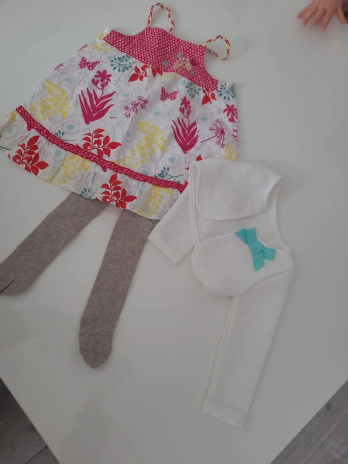 Lot 12 mois comprenant 1 gilet bolero chicarpie , 1 robe sergent major et 1 paire de collant