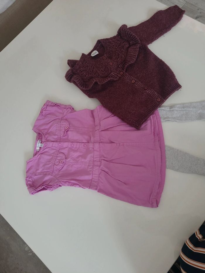 Ensemble 18 mois comprenant 1 eobe kiabi , 1 gilet tape a l'œil et 1 paire de collant obaibi