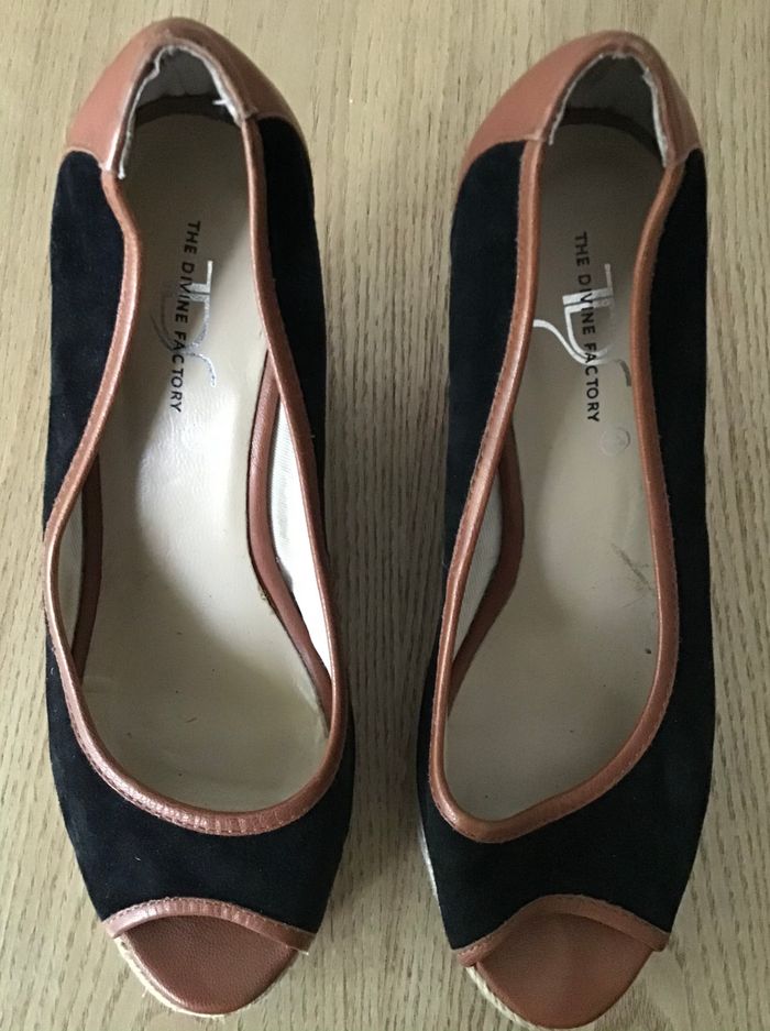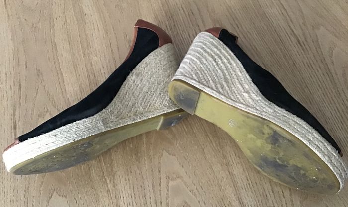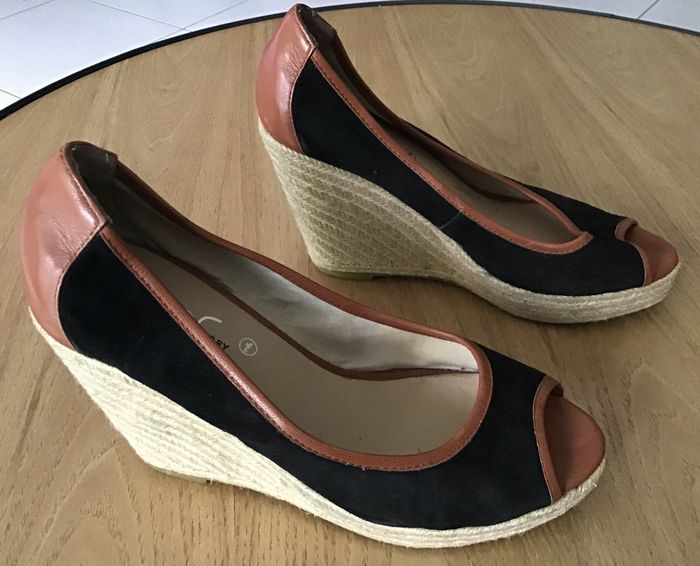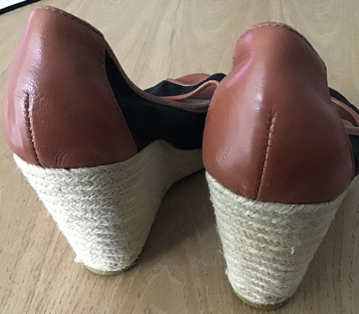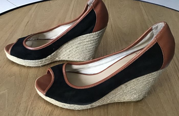 sandale talon compensée en corde et toile bout ouvert portée quelques fois hauteur talon 9,5 cm