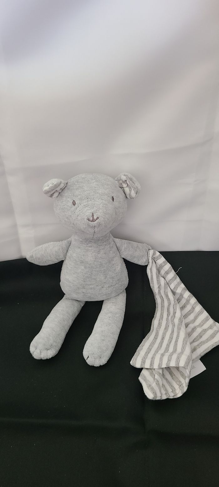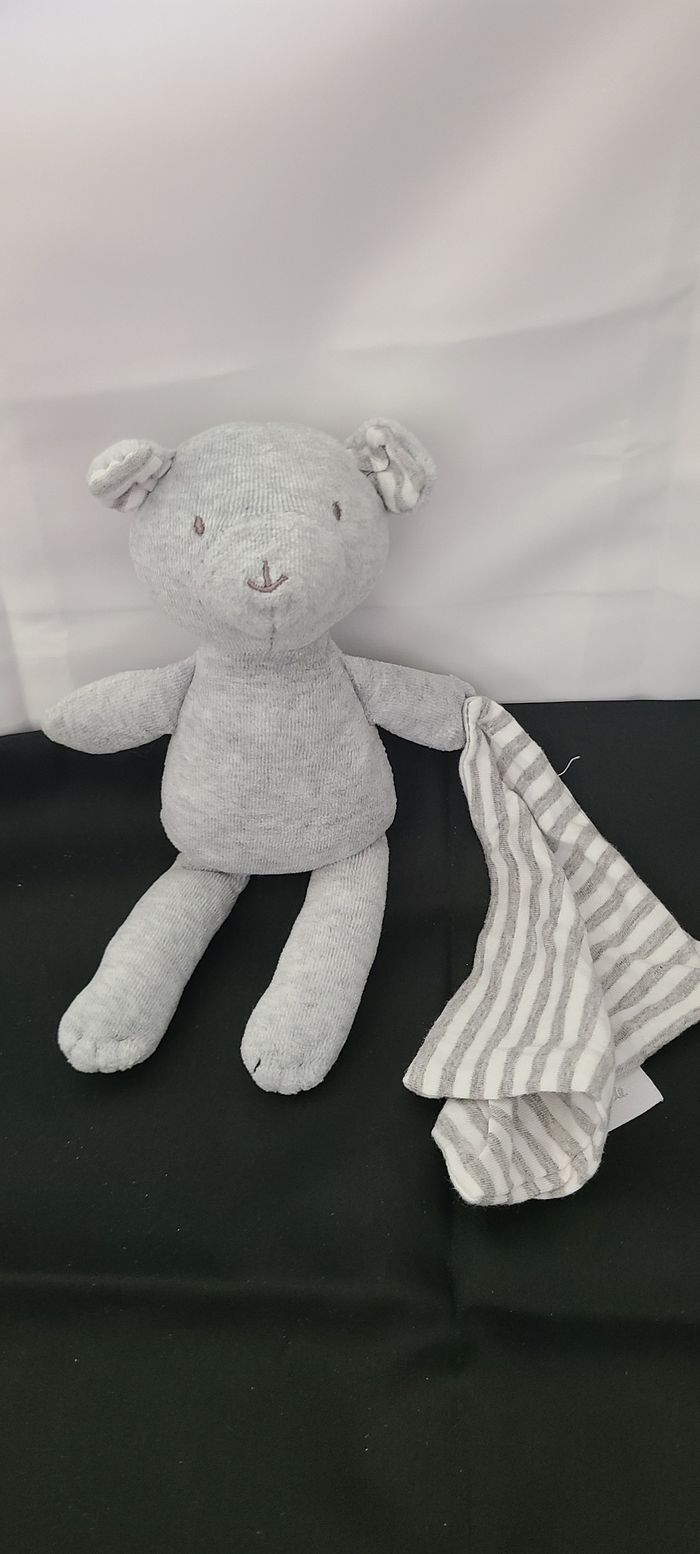 Doudou mouchoir ours CADET ROUSSELLE gris blanc rayures - photo numéro 2