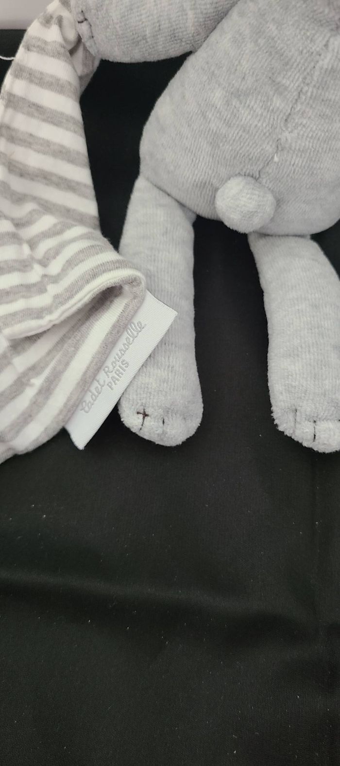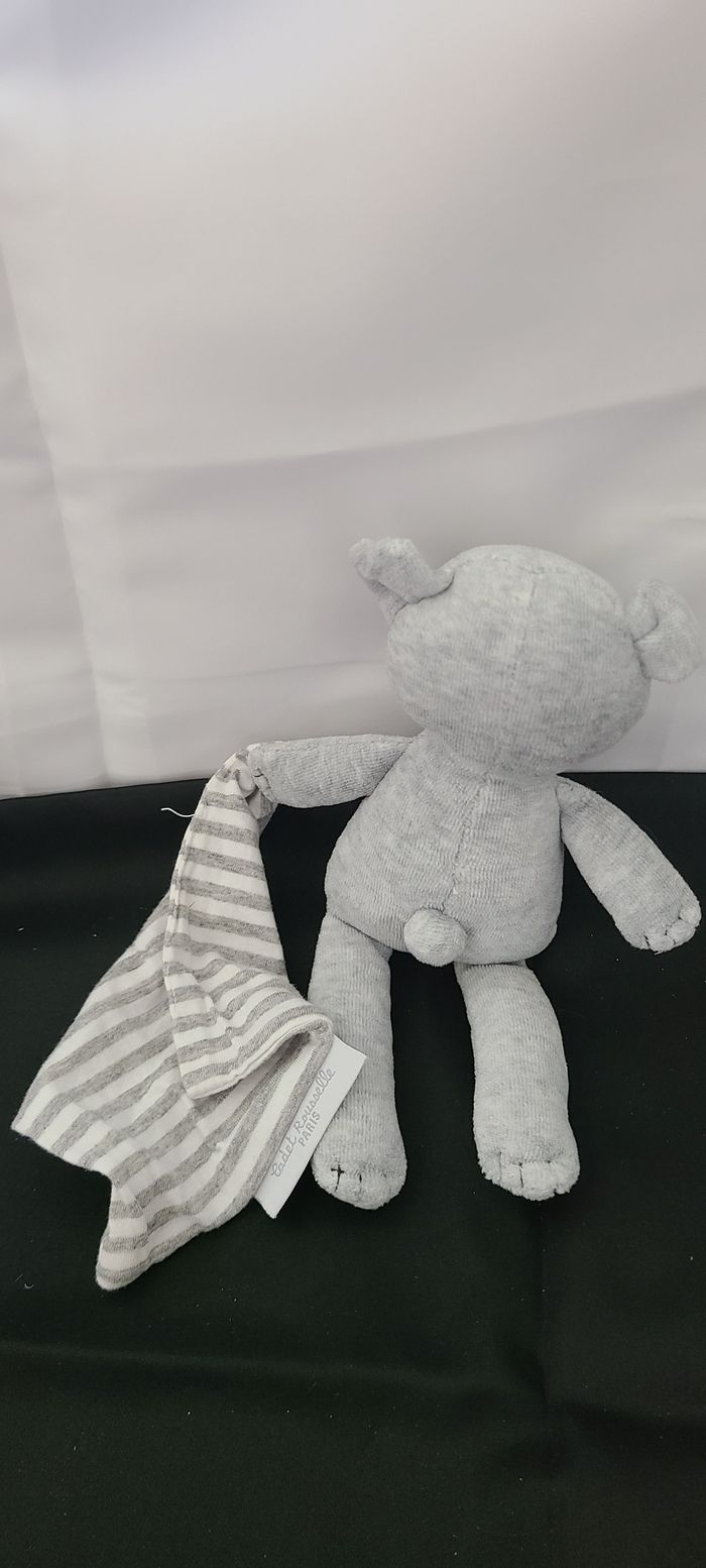 Doudou mouchoir ours CADET ROUSSELLE gris blanc rayures - photo numéro 3