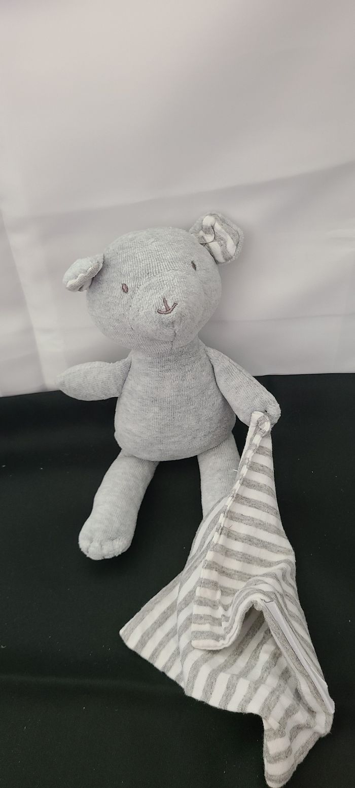 Doudou mouchoir ours CADET ROUSSELLE gris blanc rayures - photo numéro 4
