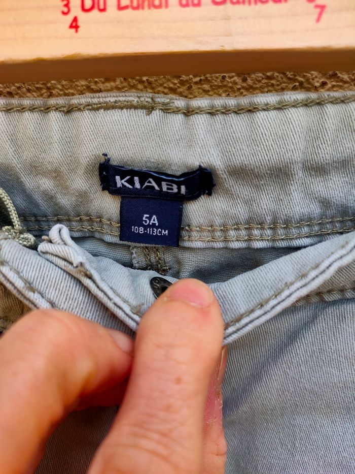 Jeans coloris gris, taille ajustable avec élastique boutonnière,marque Kiabi taille 5 ans. Il est en bon état Prix ferme, PAS DE NÉGO !!!