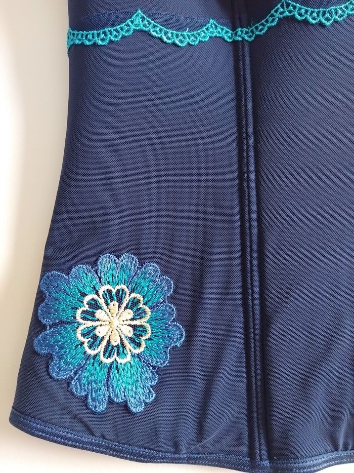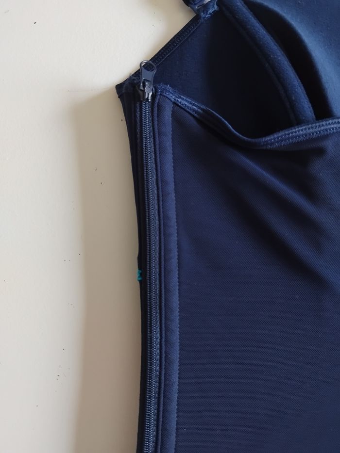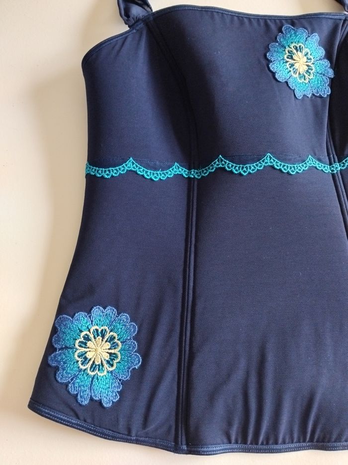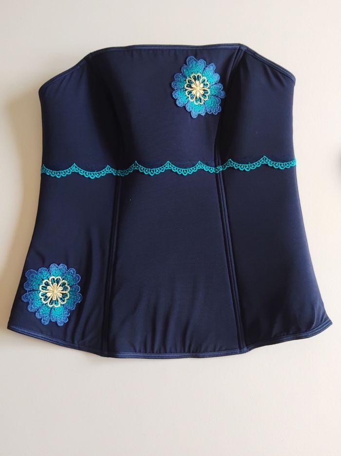Bonjour, Je vous propose ce magnifique bustier Charlott bleu. Taille 36/38. 92 % polyamide, 8 % élasthanne. Lavage à la main. Il est neuf jamais porté. Il peut se porté avec la lanière autour du cou ou en bustier sans lanière car amovible. Se ferme grâce a une fermeture éclair sur le côté. Prix 25 euros.