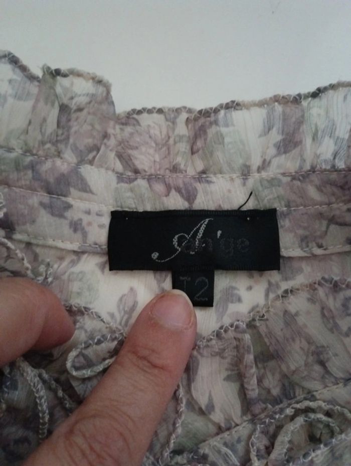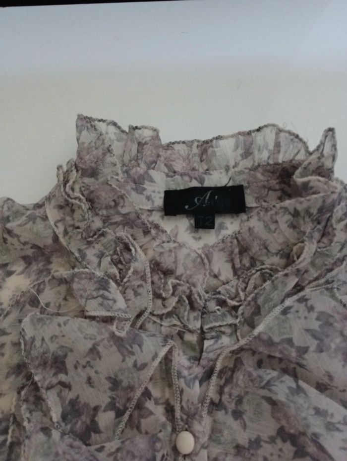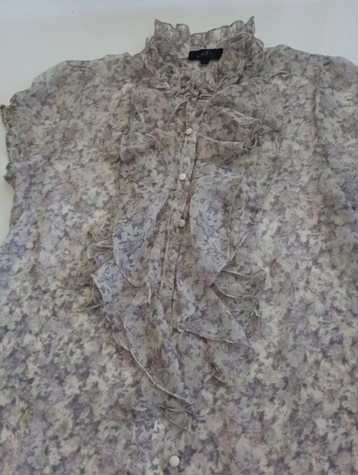 Tee shirt chemisier transparent femme froufrou An'ge taille 2 rétro vintage ancien col en froufrou - photo numéro 3