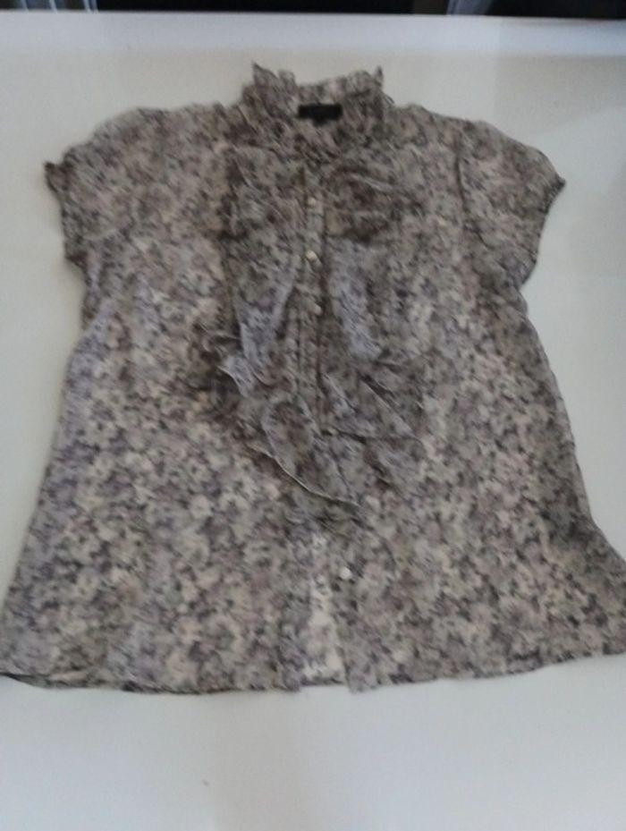 Tee shirt chemisier transparent femme froufrou An'ge taille 2 rétro vintage ancien col en froufrou En très bon état manque seulement un petit bouton