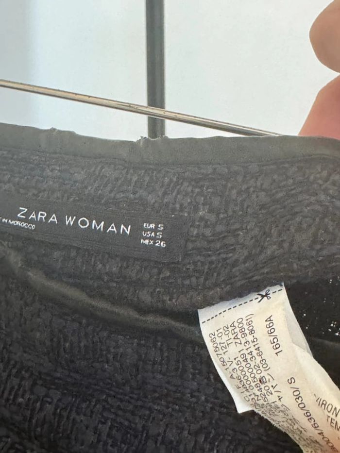 Mini jupe en tweed ton noir et marine style old money en taille S de chez Zara Porté, reste en très bon état général