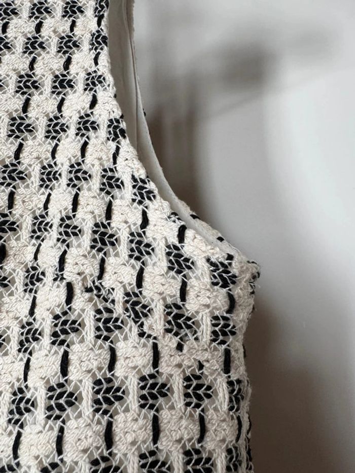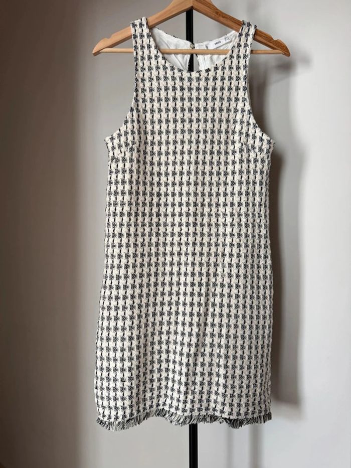 Robe courte sans manches col ras de cou matière style tweed filets noire et blanche cassé / créme coupe plutôt droite en taille S de chez Mango Neuf sans étiquette
