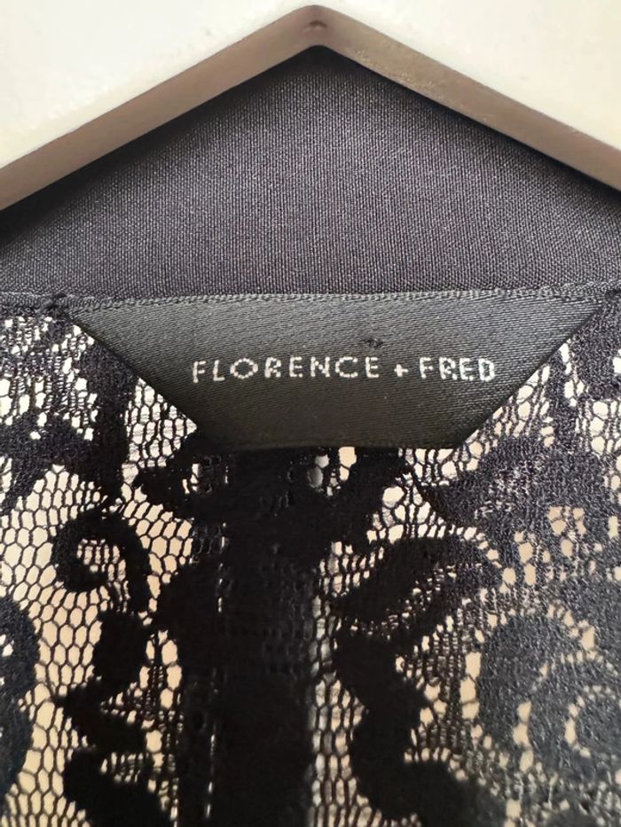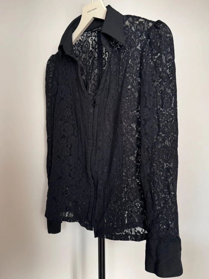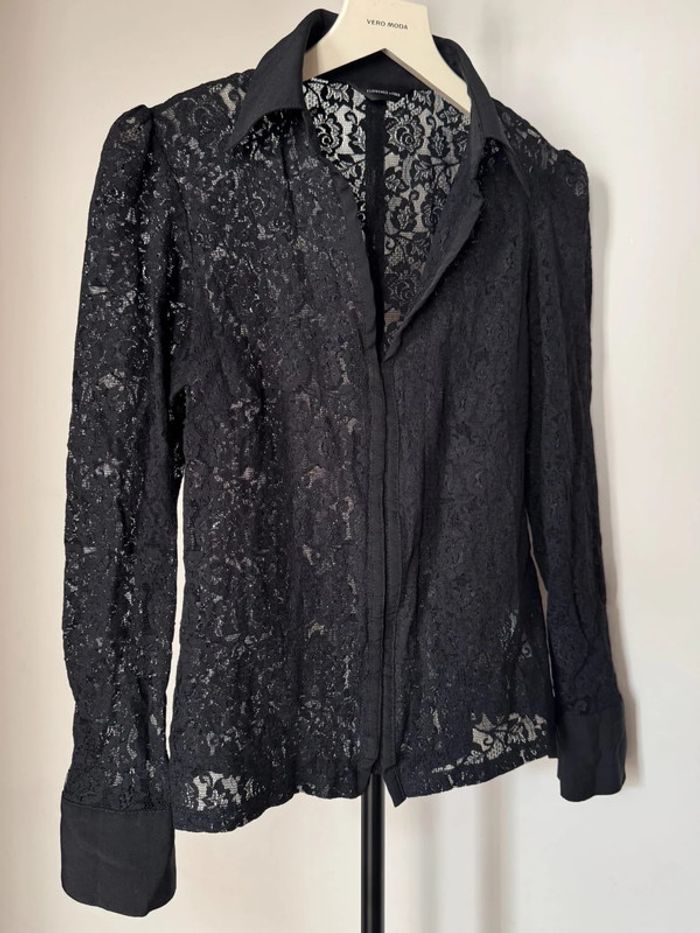 Chemise manches longues col chemise décolleté en v en dentelle noir matière semi-transparente élastique fermeture cochet en taille 12 de chez Florence + fred