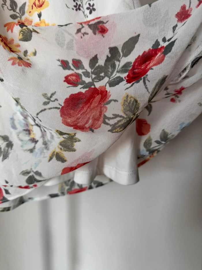 Robe fleurie blanche et rouge S Zara - photo numéro 4