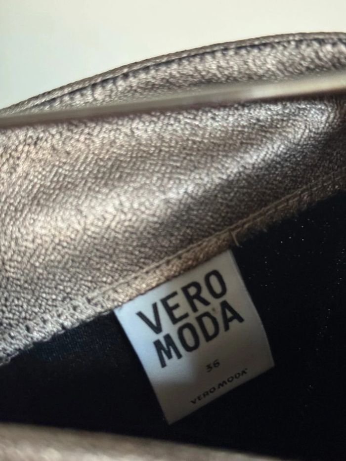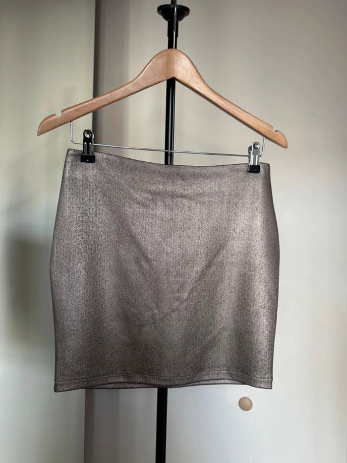 Jupe courte métallisée bronze coupe ajusté à la silhouette en taille 36 de chez Vero moda Porté mas reste en très bon état