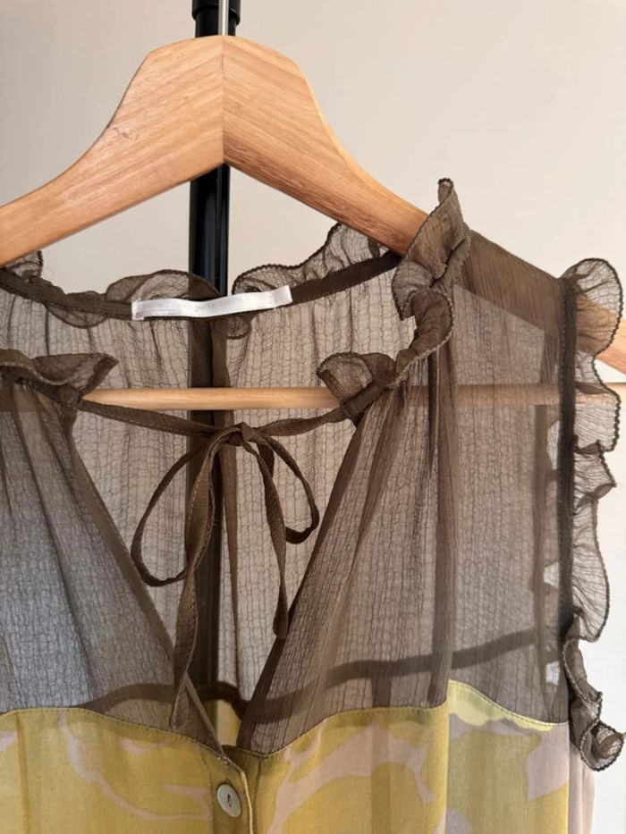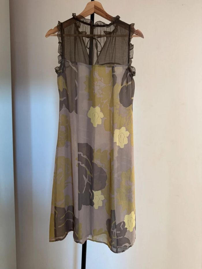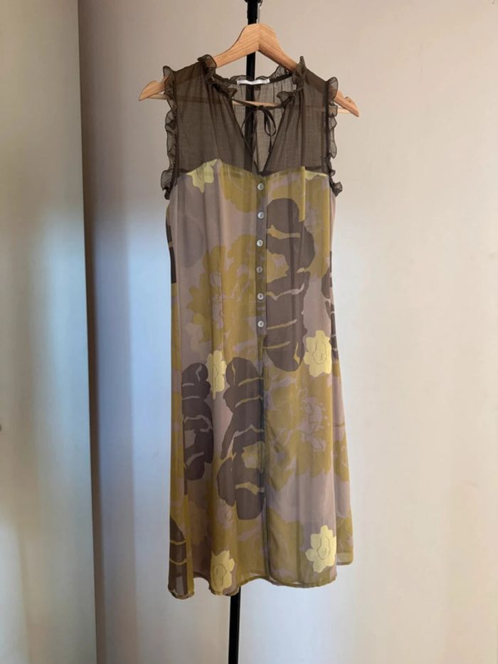 Robe semi transparente marron à motifs khaki jaune - photo numéro 2