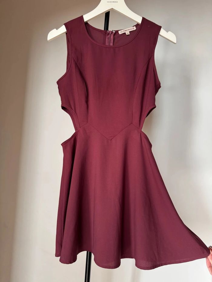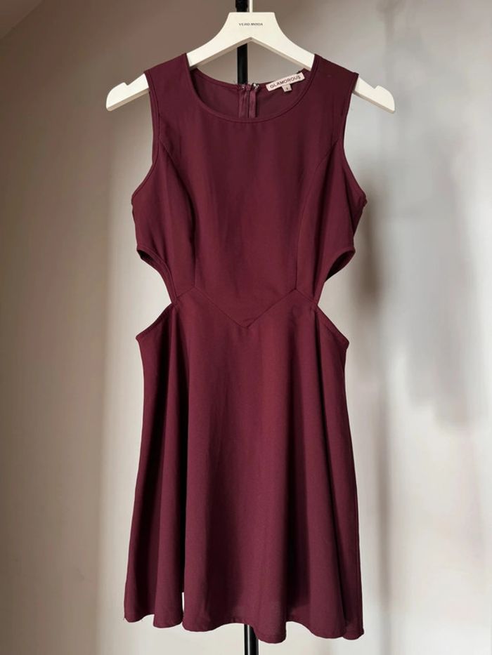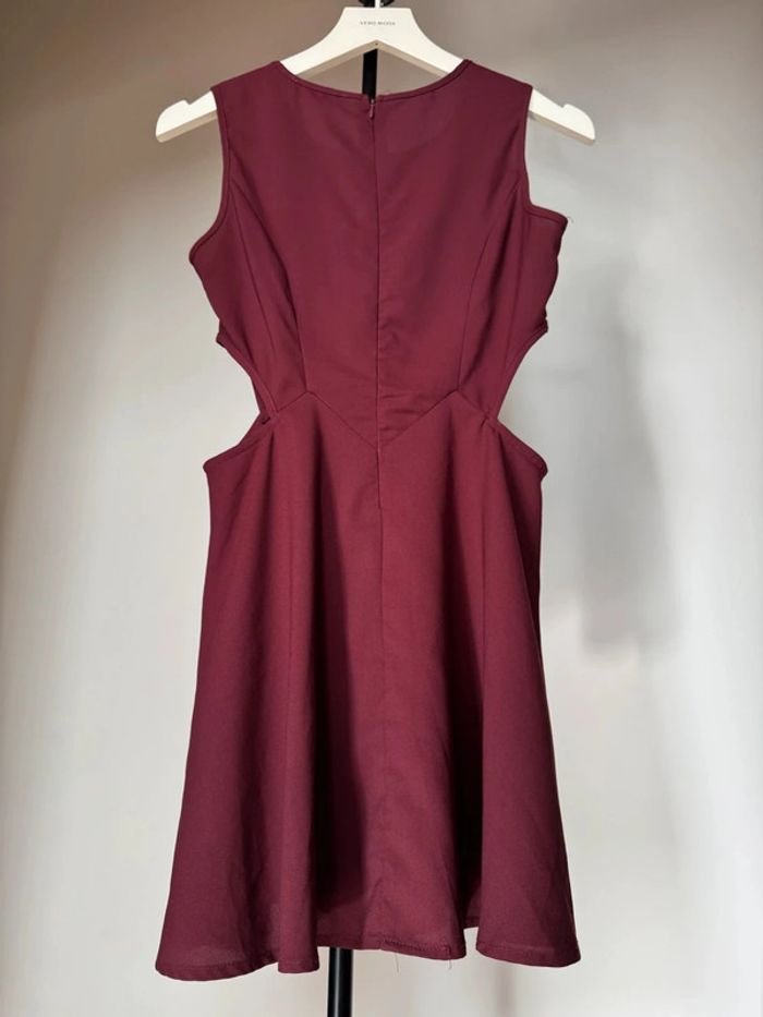 Robe sans manches uni bordeaux col rond avec découpe sur les côtés au niveau de la taille matière très légère en taille 8 En très bon état.