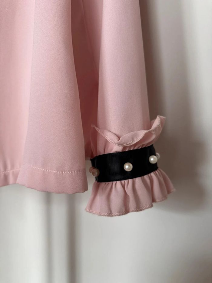 Chemise manches longues avec détails ruban noir rose pale perles blanches en taille M de chez Made in Italy En très bon état