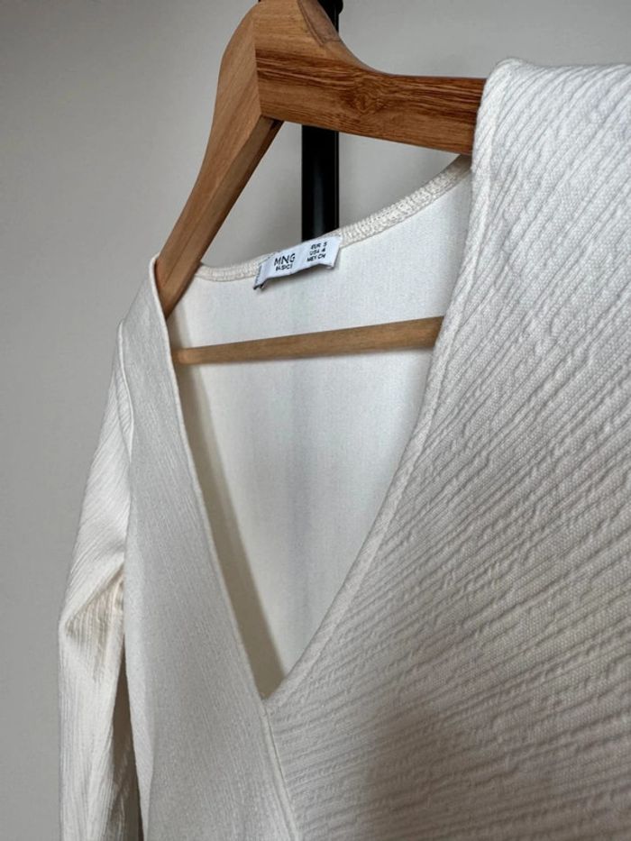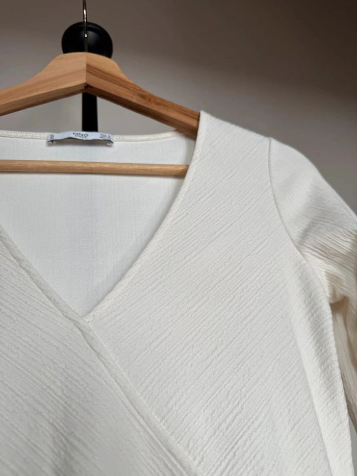 Robe ajusté élégante courte à manches avec décolleté en v blanche cassé ou crème en taille S de chez Mango En très bon état.
