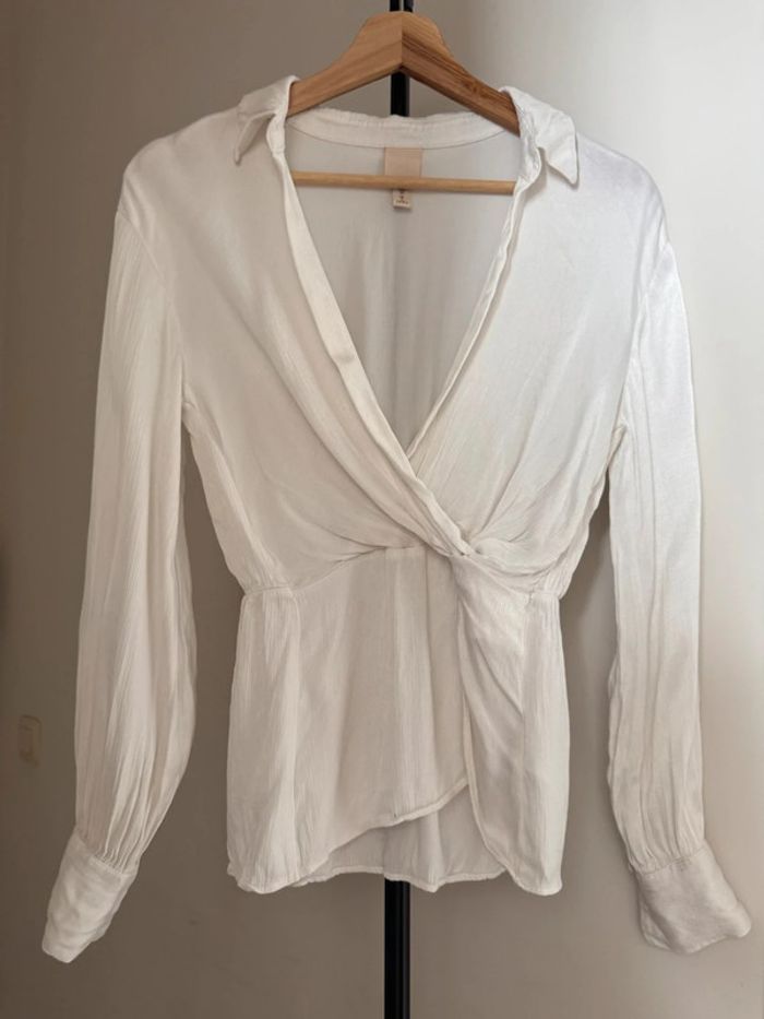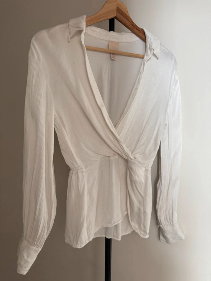 Top haut chemise cache-coeur manche longue blanc 36 H&M