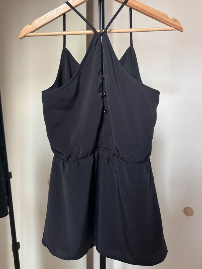Top sans manches noir col un peu type halter boutonné à l’arrière élastique sur la taille en taille M Largeur aisselles : 45cm de chez Vero Moda En parfait état