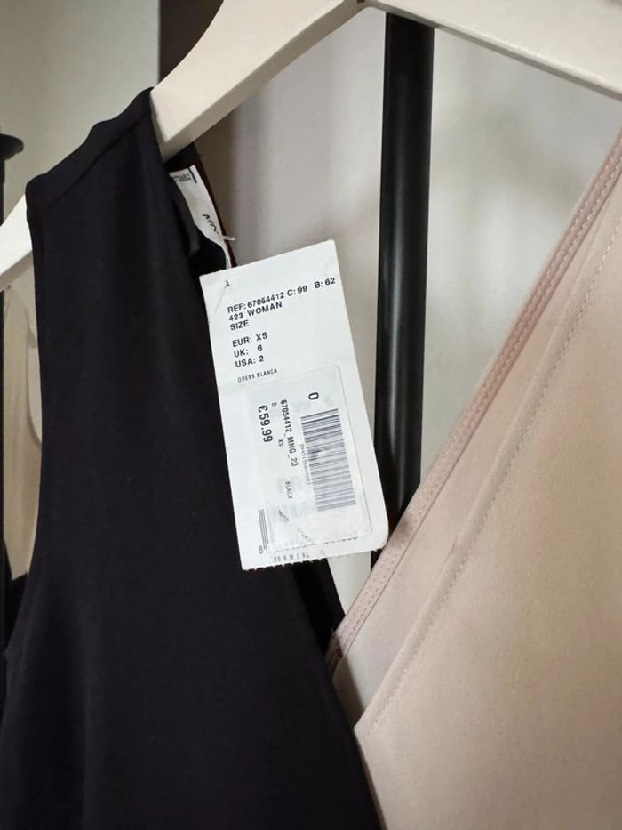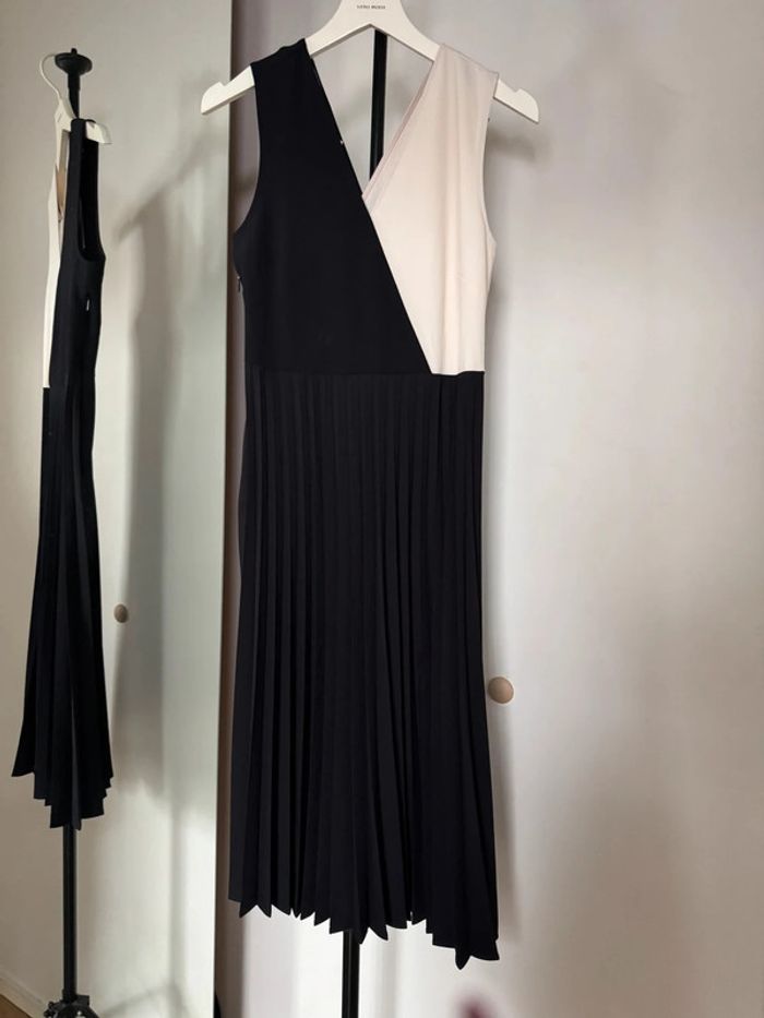 Robe plissé décolleté cache-cœur en V noir et crème en taille XS de chez Mango MNG Neuf avec étiquette Prix magasin 60 €