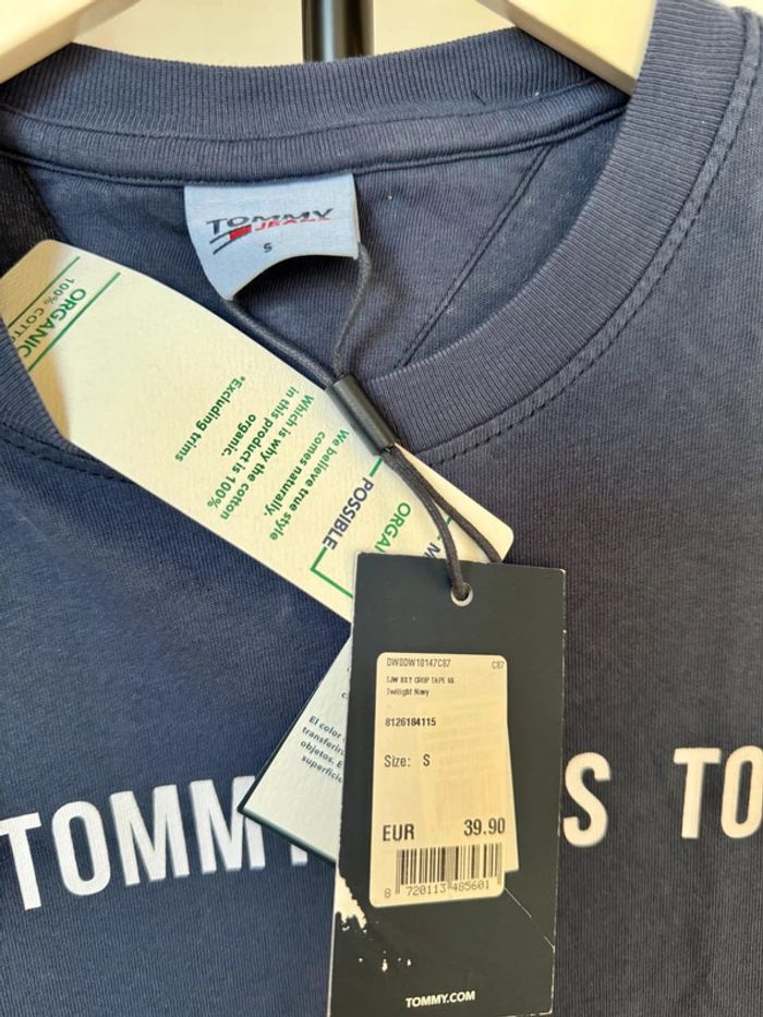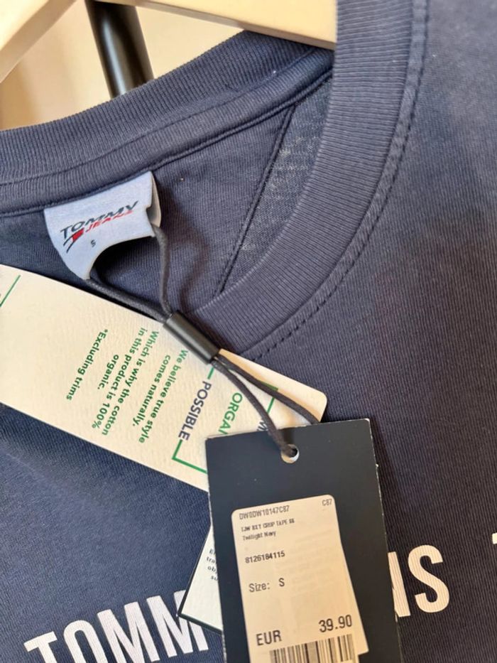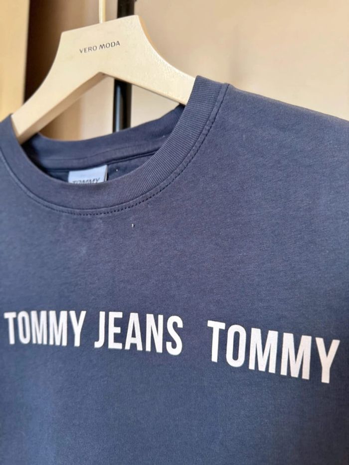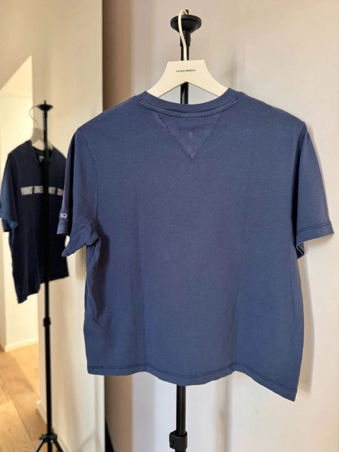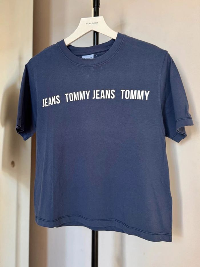 T-shirt marine effet délavé coupe large et plutôt crop logo imprimé en taille S de chez Tommy Jeans Neuf avec étiquette Prix magasin 39,90€
