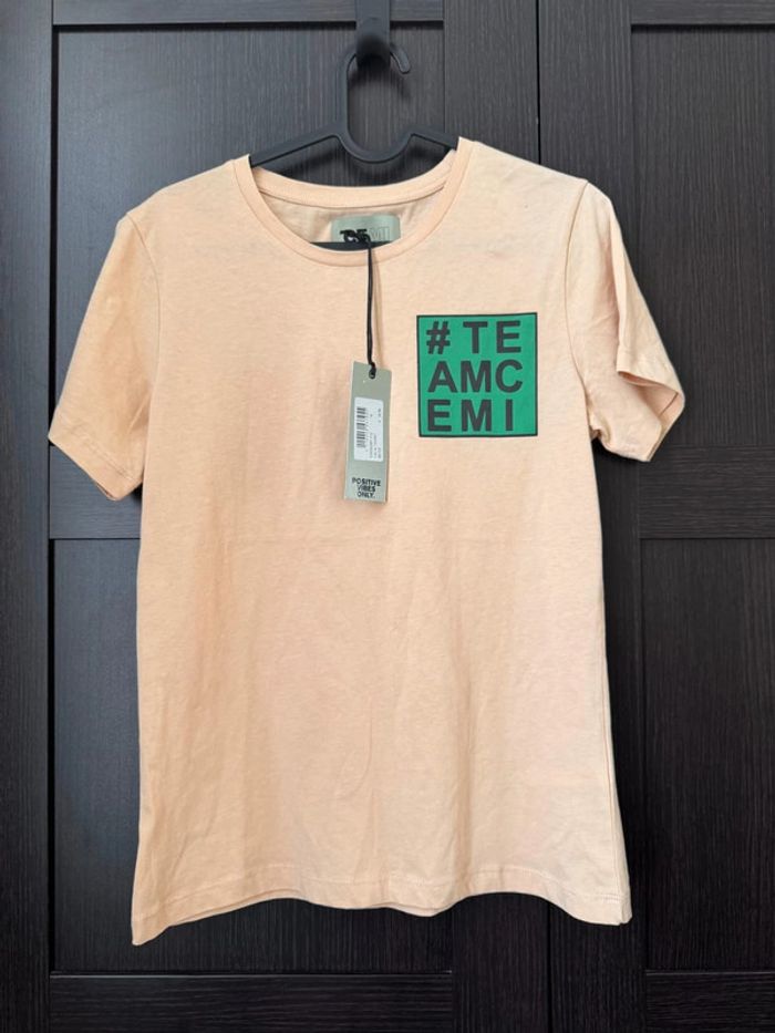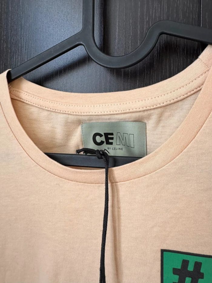 T-shirt orange claire en coton coupe classique avec imprimé sur la poitrine en taille M de chez CEMI Neuf avec étiquette. Prix magasin 34,99€