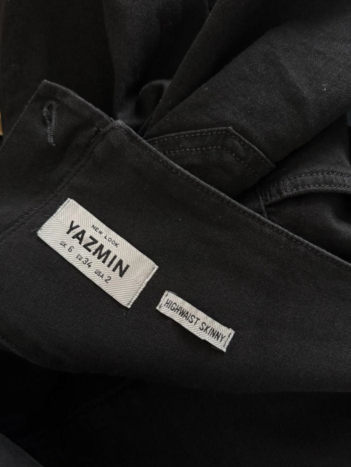 Pantalon type jean en coton taille haute Highwaist skinny uk 6 eu 34 usa 2 Leg 32 81cm Fermeture zip et crochet de chez Yazmin New Look En parfait état