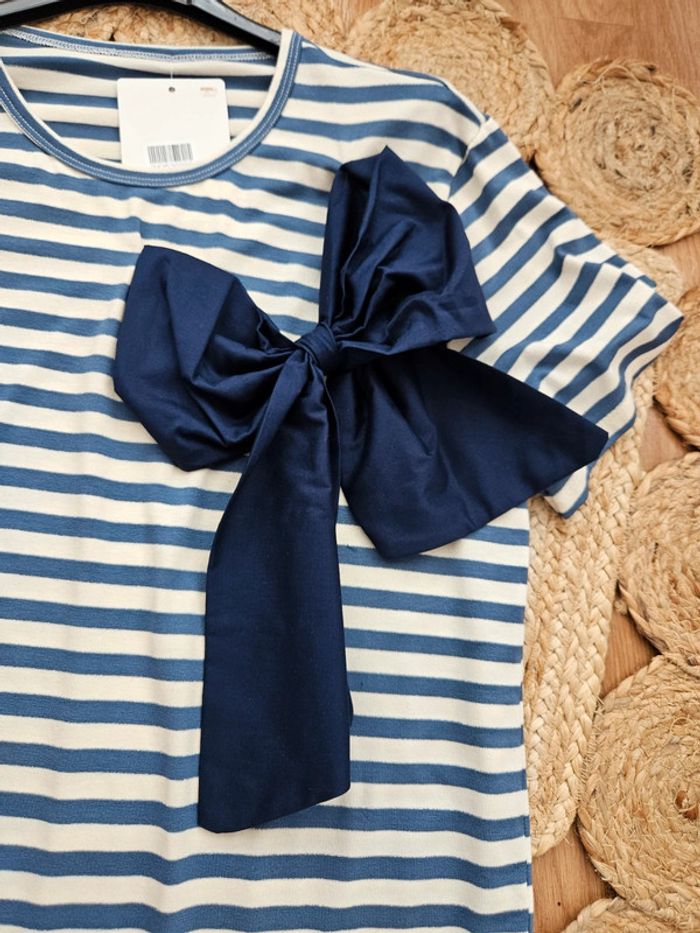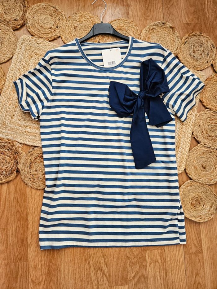 NON NEGOCIABLE Tee shirt nœud marinière. TU convient jusqu'au 42 #tee-shirt #teeshirtfemme #marinière #teeshirtnoeud #teeshirtete #mariniereete #marinierefemme #madeinitaly