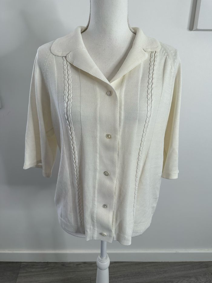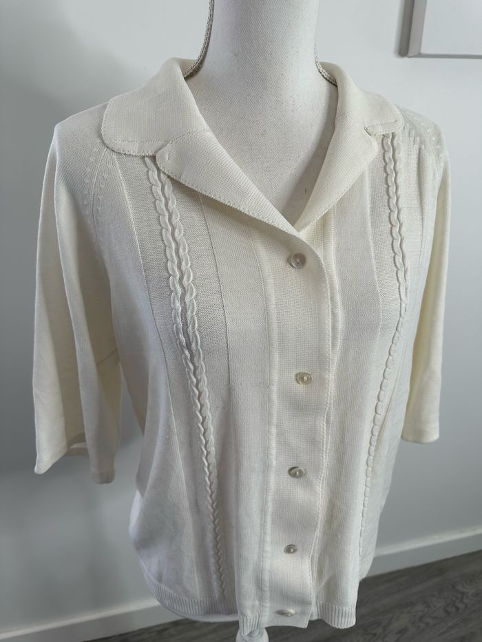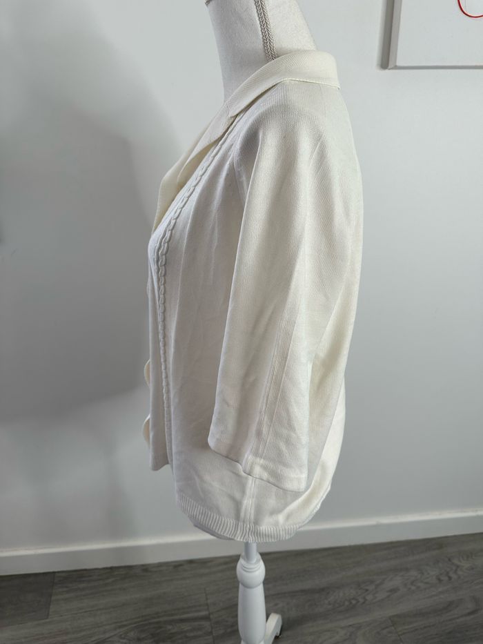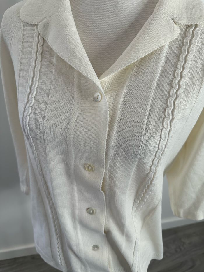 Cardigan chemise maille torsades blanc crème Vintage T40 L