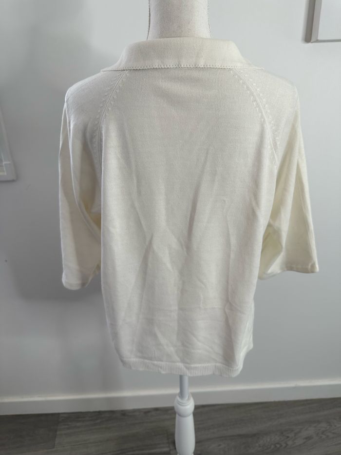 Cardigan chemise - Excellent état - Taille 40 équivalent L - Blanc crème - Mailles torsades - Se ferme avec des boutons - Manches courtes - Style old money - Vintage, années 80’ - Pas d’étiquette de taille ni de matière Dimensions: - 52cm niveau aisselles - 55cm de long