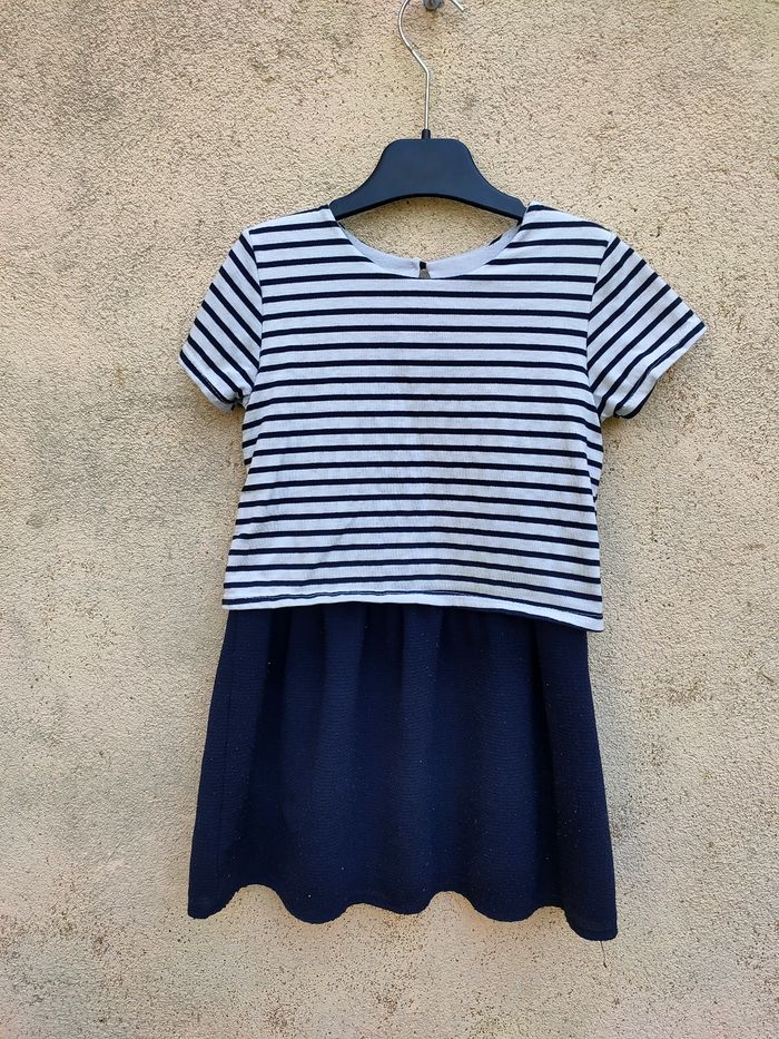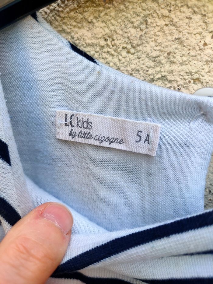 Robe marinière coloris bleu marine et blanche, marque Little Cigogne, taille 5 ans. Elle est en très bon état. Prix ferme, PAS DE NÉGO !!!