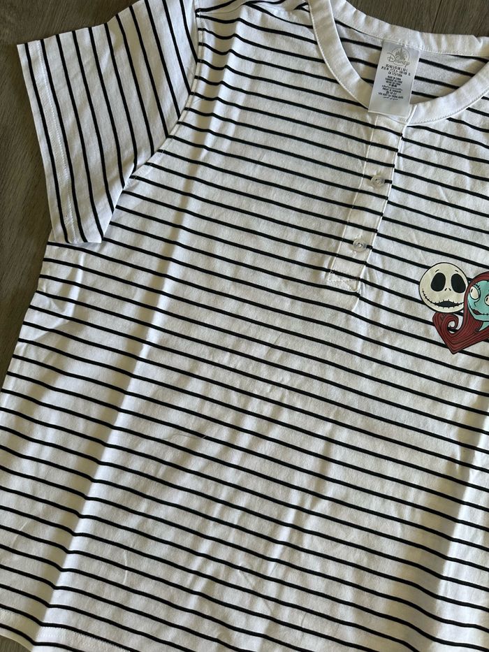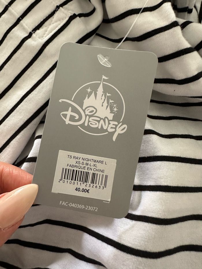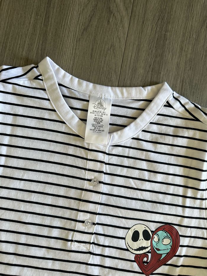 T-shirt - Neuf avec étiquette - Taille 40 équivalent L Dimensions en bas de l’annonce - Disney Store - Flocage cœur Jack Skellington et Sally - Noir et blanc - Marinière, à rayures, rayé - Boutons au niveau du col - Manches courtes - 100% Coton biologique - Prix d’achat Shop Disney: 40€ Dimensions: - 50cm niveau aisselles - 60cm de long #jackskellington #sallyskellington #letrangenoeldemonsieurjack #disneystore #disney #jacksally #timburton #timburtonstyle