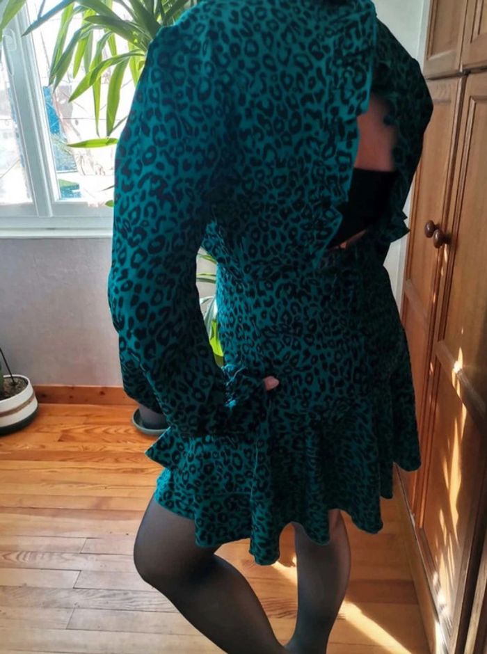 Robe bleu verte léopard dos nu manches longues Taille 40 En très bon état #leopard #robefemme40 #dress #vestido #vestitodonna #vintagestyle #mancheslongues #taille40 #vestido