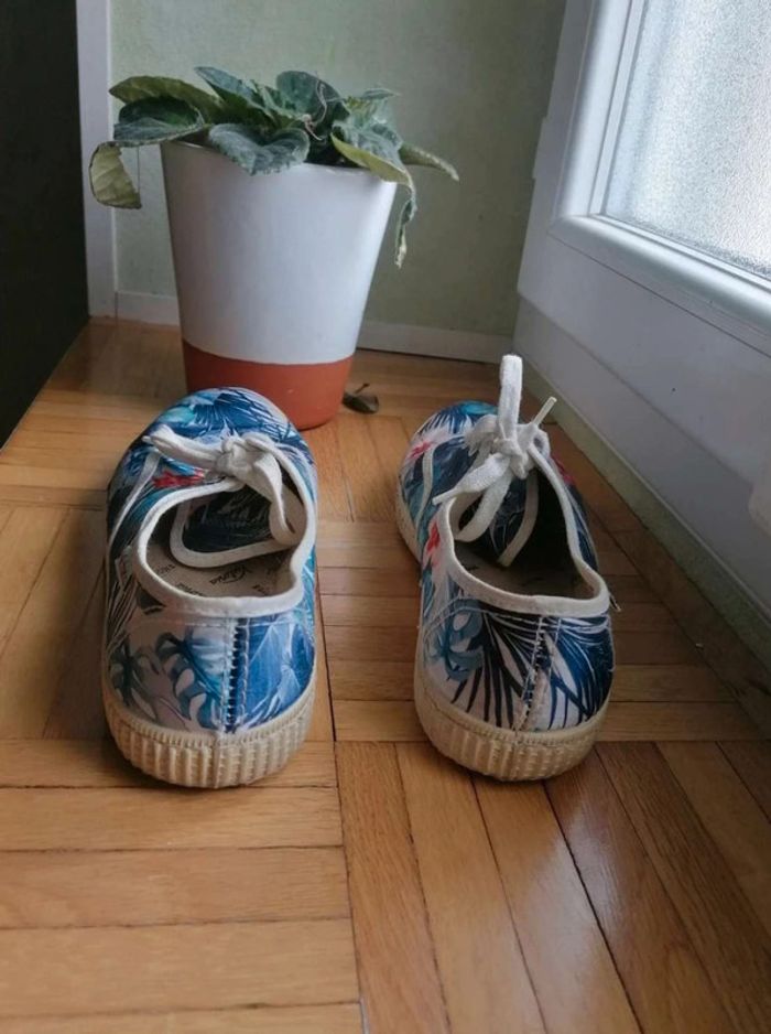 Basket plate à fleurs Marque Victoria Taille 38 Portée mais reste en très bon état général. Évidemment traces d'usures semelles qui est un peu jauni ( Peut peut être avec les éponges de mr propre redevenir plus blanches. Pas de trous pas de taches. I. Code Y2k #victoria #basketafleurs #fleurs #basket #été #taille38