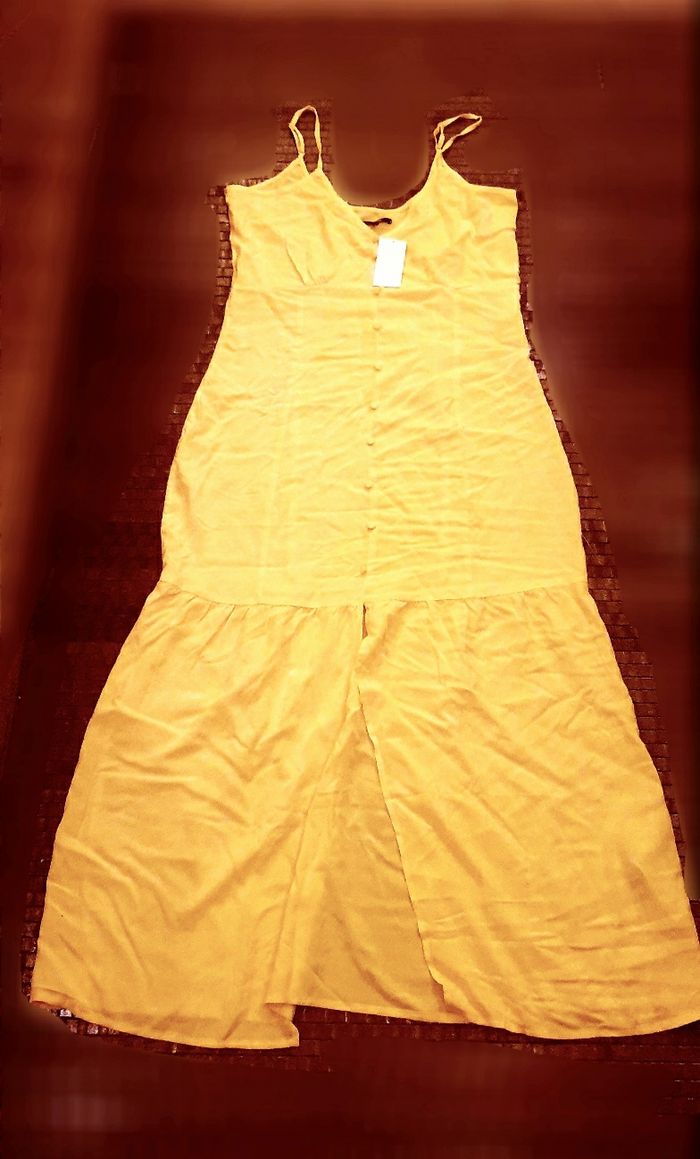 Robe longue jaune lumineuse, faux boutons, fendue dans le bas sur la partie volant Neuve