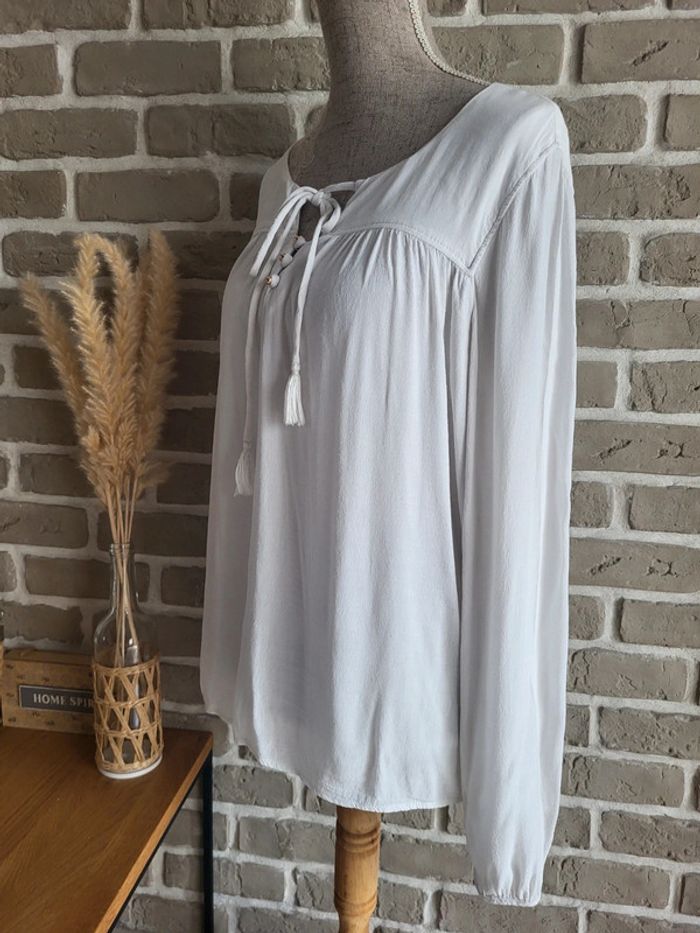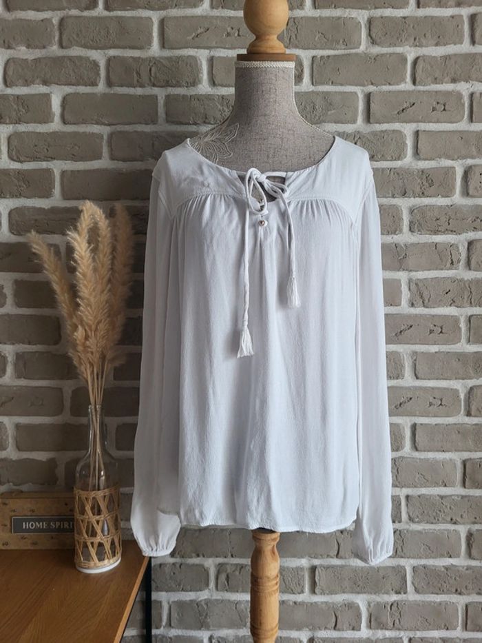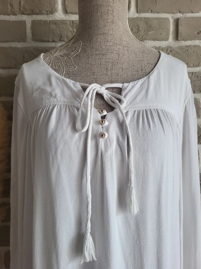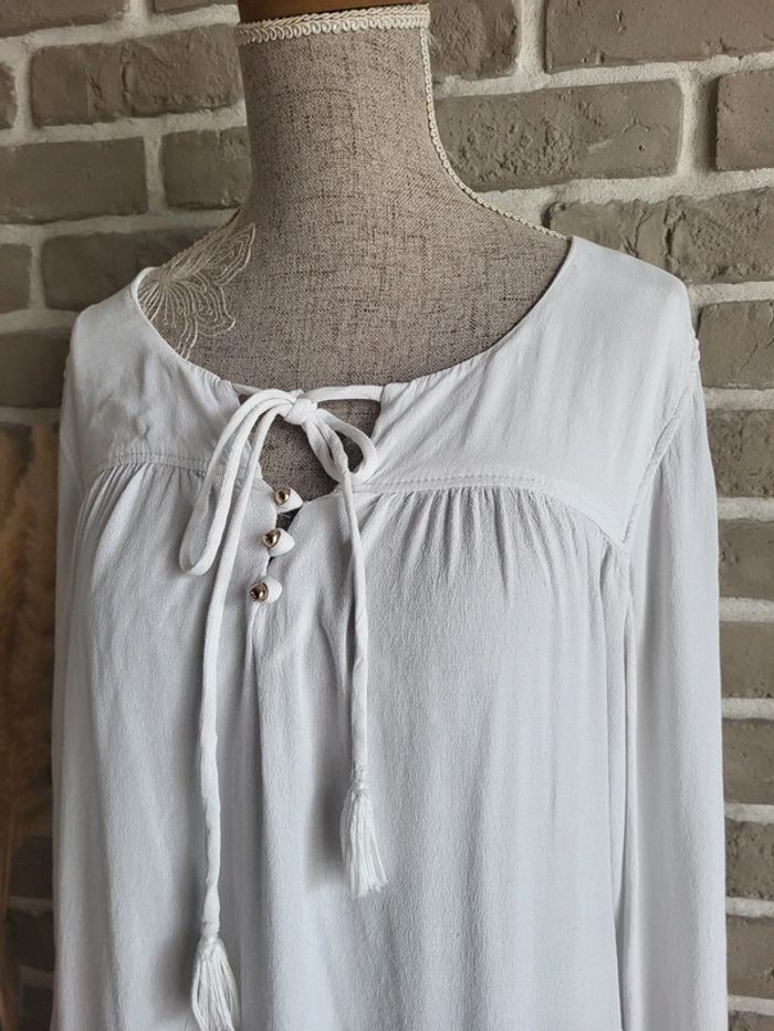 Blouse blanche Naf Naf - liens pompons et boutons dorés - photo numéro 10