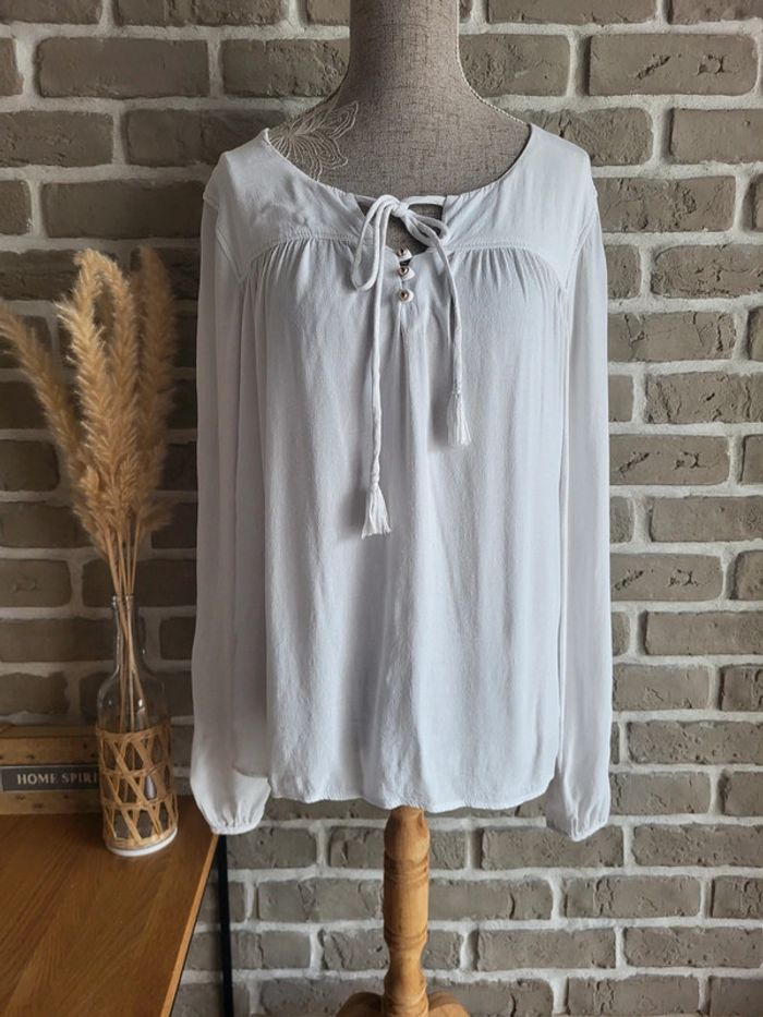 Blouse blanche Naf Naf - liens pompons et boutons dorés - photo numéro 1